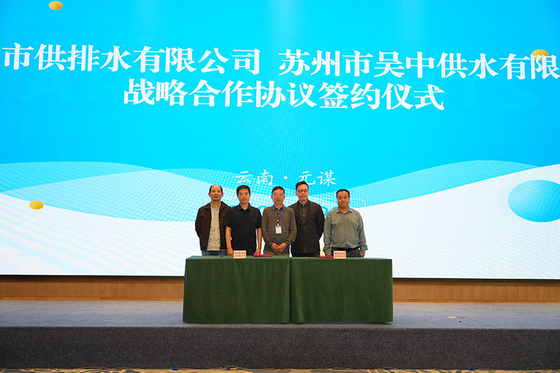 在全体参会代表的见证下,楚雄市供排水公司与苏州吴中供水公司签署了战略合作协议及党组织共建结对协议。南华县欣源开发投资公司董事长鲁海涛从元谋县供排水公司董事长杜向阳手中接过了楚雄州供水技术管理交流会会旗。