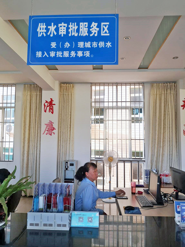 按照上级部门的要求和部署,公司上下统一思想认识,牢固树立不抓营商环境就是失职,抓不好营商环境就是不称职的思想,结合公司目前的运营情况,积极与县政府、县政务局沟通对接,并在11月初正式入驻县政务大厅,安排专人在政务大厅上班并负责办理用水报装申请业务,同时对报装业务进行了优化完善,审批时限也从原来的10个工作日调减为5个工作日,公示了办事指南和办理流程,并通过微信公众号和收费窗口进行宣传。