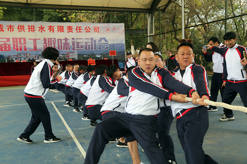 赛场上,气球传纸杯在同事间的顺利传递过程中反映出大家在工作中的高度默契;滚铁环比赛把大家的记忆拉回到无忧无虑的童真时代;集体跳绳中整齐划一的起跳,展现了大家听从指挥、协力同心、着眼大局的集体观念;拔河赛体现了顽强拼搏、争创一流、昂扬向上的新供水人风貌……我运动、我快乐,我健康、我成长”的运动理念在每一个运动员身上充分展现。