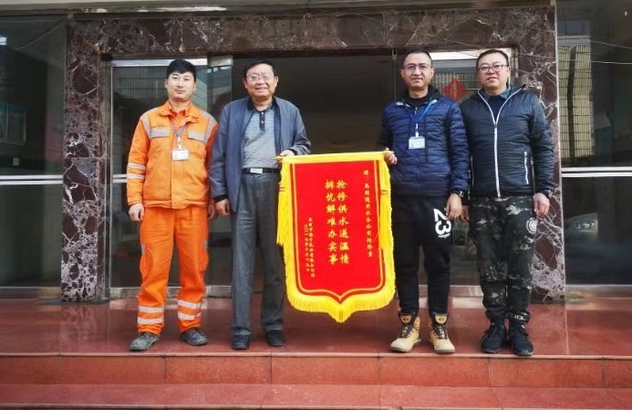 12月18日,海子乳业公司工作人员向管网维护部赠送了一面锦旗,以表达自己的感激之情。锦旗虽轻,情意很重。通用水务工作人员也将一如既往秉承为民服务的宗旨,在平凡的岗位上展现心系群众,热情服务的良好风貌,树立供水人员的良好形象。
