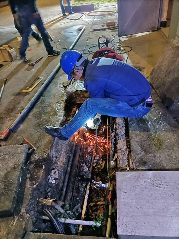 曲靖第三自来水厂抢修滤后加氯系统供水管道