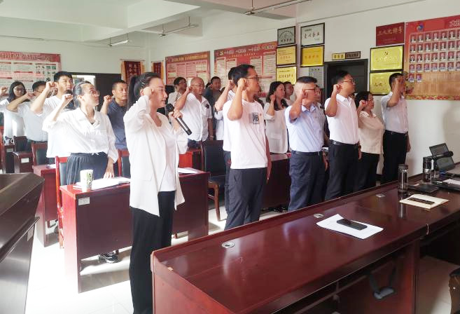 重温入党誓词,汲取奋进力量。全体党员面对鲜红的党旗,高举右手,庄严宣誓。每一个字句,都铿锵有力;每一个动作,都坚定豪迈。此刻,每一位党员都热血沸腾,“何其有幸,生于华夏、长于盛世,感恩我们伟大的党”。更加坚定以后在实际工作中“不忘初心、牢记使命”,以实际行动兑现对党的庄严承诺。