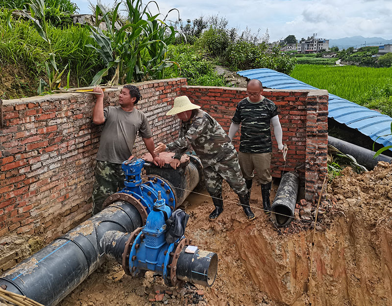 广南县自来水公司闻令而动,筹资50余万元,于7月24日启动加压提水工程建设。其间,公司领导班子亲自带队、挂图作战,无论烈日当顶,还是雷雨交加,或是日夜兼程,他们义无反顾,砥砺前行。8月16日,通过25个昼夜的接续奋战,完成架设变电设施,建设临时泵房,铺设DN250-DN400取水管400余米,并配套三通、闸阀等配套附属设施,并试通水成功。水库水汩汩流进一水厂后,经过反应池、沉淀池、过滤、清水池后,再输送到广南城区千家万户,可满足老城区、城北片区近6万群众生产生活用水需求。