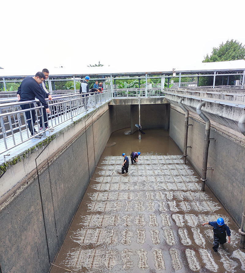 检修前,厂区负责人和动力设备部技术人员经研究讨论,制定了完善的检修方案,从人员组织、系统调整、安全管控等方面作了周密准备,并动用各方资源,确保整个大修工作快速高效且有条不紊。作业人员不畏艰难,做足保护措施穿上厚重的防水裤进入氧化沟,在作业员10天的紧张劳作和密切配合下,于10月31日顺利完成检修工作。经统计,此次检修共更换曝气带32条、螺旋桨泵6台、搅拌器4台、16台推流器减速箱齿轮油和保养阀门4个,维修两台故障推流器,清除设备上悬挂的杂质垃圾。
