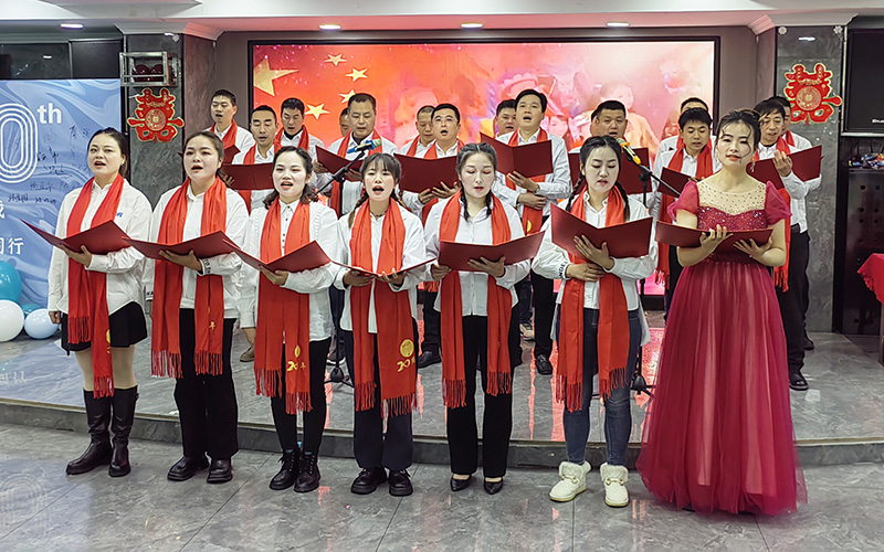 接着进行的是由各部门精心准备的文艺节目,《我和我的祖国》以唯美、抒情为主基调,向观众诉说明丰供水人的“中国梦与供水情”,拉开了公司庆祝明丰供水成立20周年活动的大幕;《朋友》一首旋律悠扬、积极向上的友谊之歌,《三句半》一个原创类语言节目,舞蹈串烧《好运来》、《过河》、儿童舞蹈《科目三》……一支支舞曲在表达着明丰供水人的奋斗心语。舞蹈、语言节目、大合唱、小合唱、抽奖环节、游戏环节等不同的表演形式构筑了整个周年庆活动,台上激情高涨、台下掌声不断,明丰供水人用激情、热情、真情演绎了一幕幕经典故事,表达自己的爱国情怀和“不忘初心、牢记使命”的使命担当。