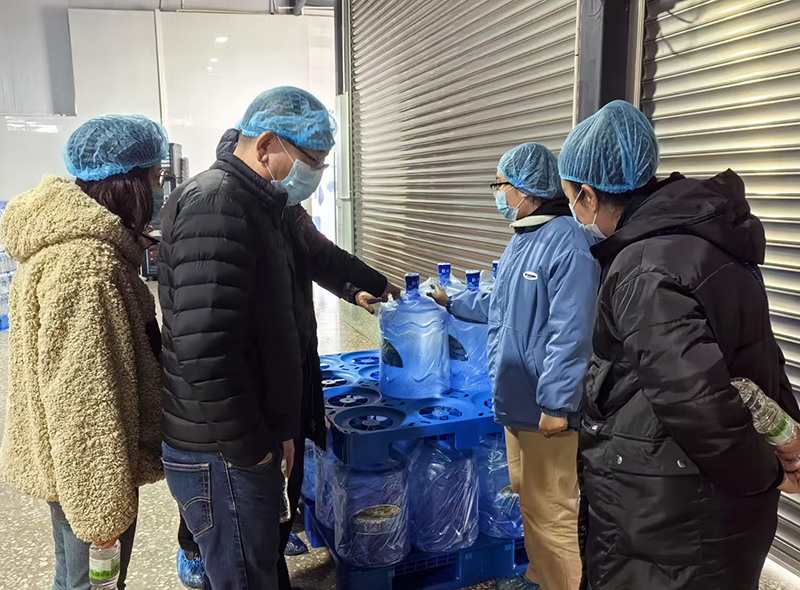 随后,考察团移步至仓储中心。这里规范有序,科学的仓储管理系统确保了产品的存储安全和发货高效。叶小雨董事长详细询问了库存管理模式、物流配送流程以及产品的市场覆盖范围等信息,对水厂在供应链管理方面的精细化运作表示赞赏。