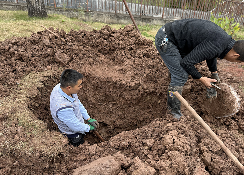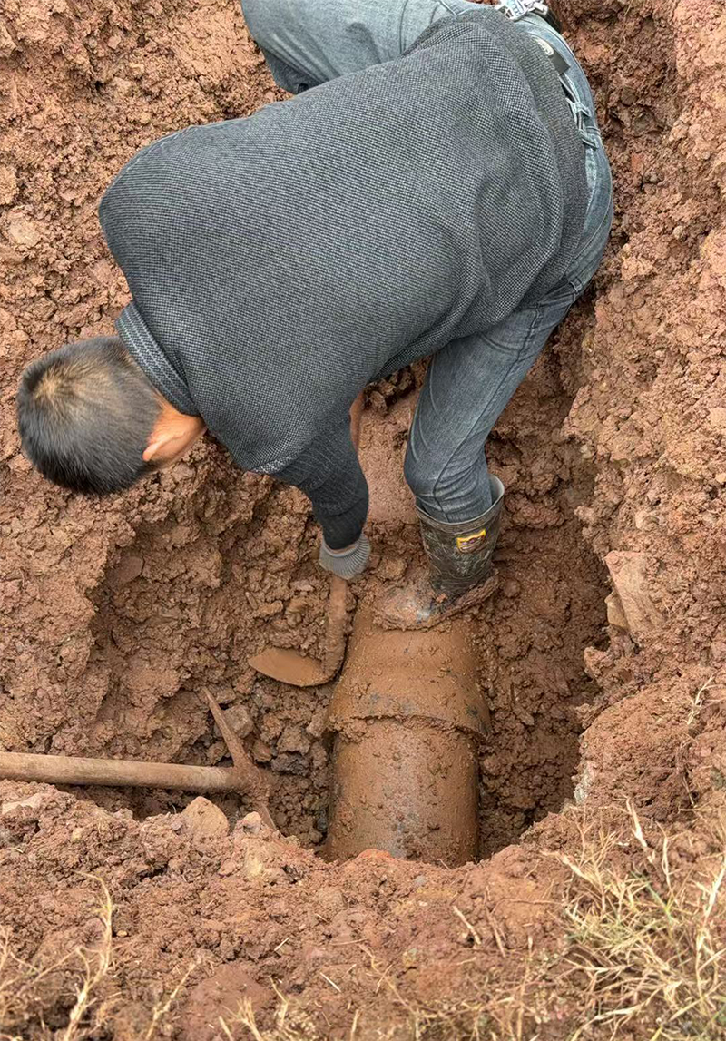 该管道深埋地下约1.5米,周边为黏性土层,人工开挖需逐层清理、加固坑壁,作业难度远超预期。为最大限度降低停水对居民生活的影响,抢修人员采用轮换作业模式,纯人工清理近5立方米覆土,并完成破损段切割、新管焊接等精细操作。整个抢修过程仅用时4小时,便完成漏点修复、管道试压及覆土回填,顺利恢复供水。