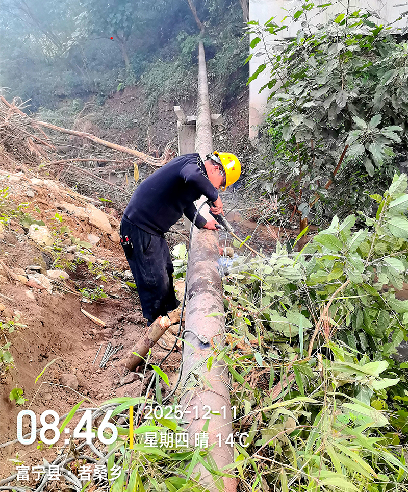 为践行国家倡导的“城乡供水一体化”,富宁县供排水公司接管了县内剥隘、归朝、木央三个集镇供水。2025年12月9日清晨,富宁县者桑乡境内突发山体滑坡,裹挟着碎石的泥浆瞬间冲毁剥隘集镇引自者桑乡境内的内吉水库供水主管道,DN200 引水管道在滑坡体冲击下多处断裂,露天管道被泥石掩埋,造成剥隘集镇原水供给告急。