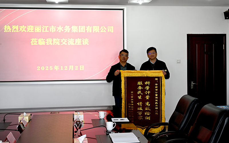 近日,丽江水务集团王剑凌董事长一行专程到云南省计量院,送来一面题有“科学计量,高效检测,服务民生,情暖万家”十六个烫金大字的锦旗,对云南省计量院在丽江老旧水表轮换工程中提供的技术支持与高效服务表达诚挚谢意。这面锦旗不仅是对云南省计量院检测工作的高度认可,更体现了双方在服务民生、保障城市供水安全领域的深度协同与价值共识。