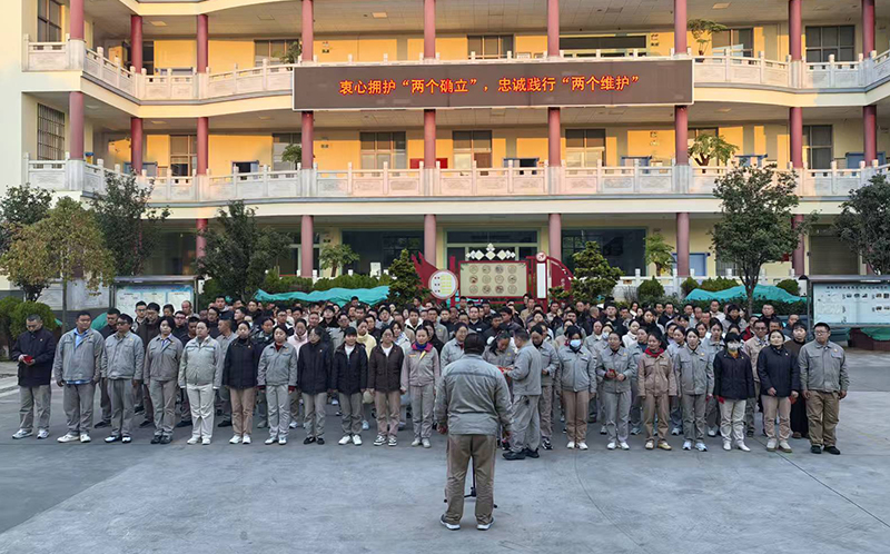 当国旗升至杆顶,在晨风中猎猎招展,全场爆发出热烈的掌声。鲁跃军董事长身着正装,稳步走到话筒架中央,目光扫过身旁精神抖擞的员工们,声音沉稳而有力:“今天,我们在国旗下迎接新年的到来,每一面国旗的升起,都是一次初心的回望,一次使命的召唤!”