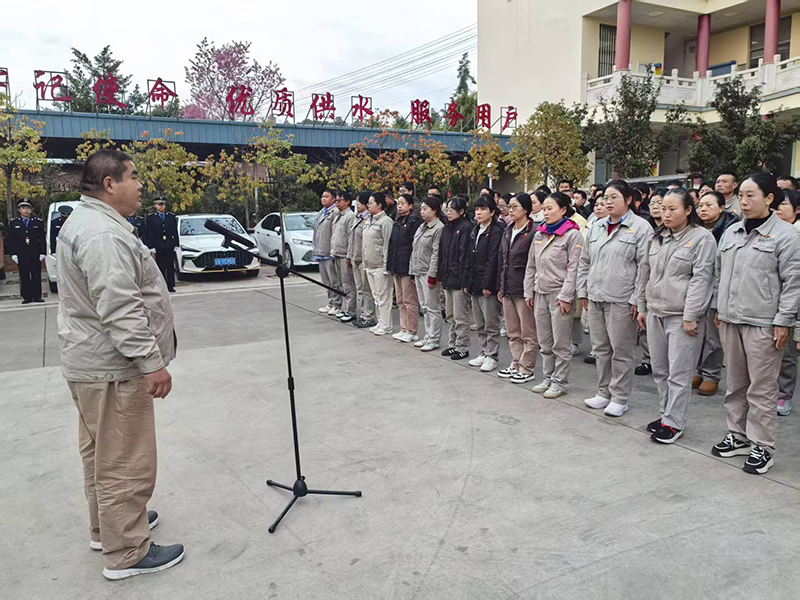 他说道:“昨晚,习近平总书记的元旦致辞言犹在耳,‘人民’二字重千钧,‘奋斗’之志催前行。作为供水人,我们的初心就是让市民喝上安全水、放心水,我们的使命就是用实干奉献社会。”董事长的话语掷地有声,“新的一年,让我们牢记‘不忘初心、牢记使命’的嘱托,把这份爱国情转化为工作的动力,在水质保障、管网升级、服务优化的道路上砥砺前行,以高质量的供水事业,为城市发展赋能,为市民幸福加码,再创弥勒供水的新辉煌。”