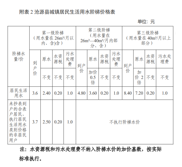 (三)未实行抄表到户的合表用户居民、执行居民生活用水类别价格的非居民用户,不实行阶梯价格,供水价格在第一级阶梯价格上浮5%确定。