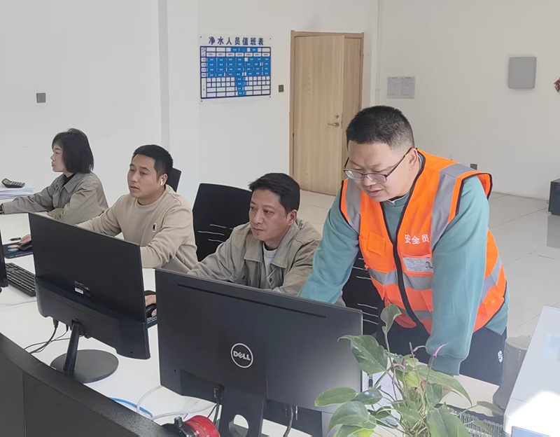 全面体检,不留死角。检查组紧盯供水运行核心环节,对水泵、阀门、电气设备、消毒装置等关键设施逐一“过筛”,确保设备工况良好、运行稳定。同步核查消防器材配置与有效期,测试消防栓、灭火器、消防水带等是否完好可用。在办公区域,重点检查安全通道是否畅通、中控室监控系统是否正常运转。针对化验室及药品仓库,严格核对化学品、药剂的存放规范,确保危险源管控到位。此外,检查组还查阅了厂区安全例会记录和劳动防护用品配备台账,督促一线人员培训到位、防护到位。