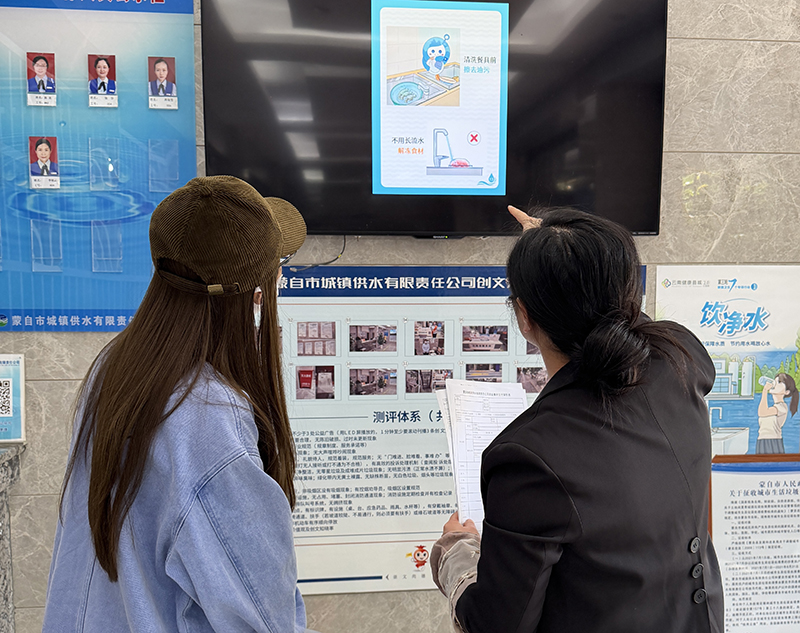 活动期间,公司立足服务窗口阵地,将节水宣传融入日常服务场景。大厅电视循环播放节水知识宣传图,以直观生动的形式展示家庭节水技巧、节水器具使用等内容,让前来办理业务的市民在等候与办理过程中潜移默化接受节水教育,营造“抬头可见、驻足即观”的宣传氛围。