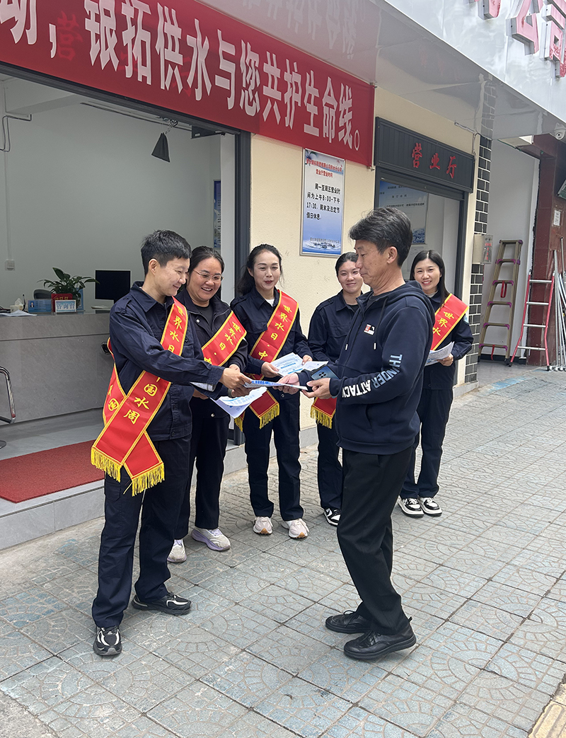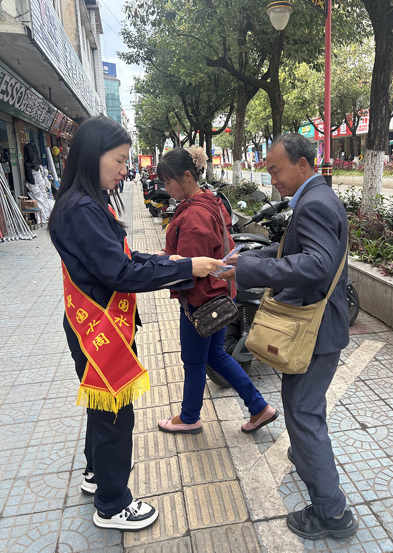 3月23日,在第三十四届“世界水日”、第三十九届“中国水周”之际,景东银拓管理公司围绕“清水润万家,节水靠大家,落实国家节水行动,银拓供水与您共护生命线”的活动主题,在公司所在街道开展主题宣传活动,向入驻企业员工、社区居民普及节水护水知识,引导全社会树立珍惜水资源、保护水环境的意识。