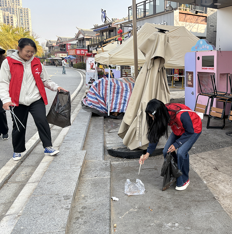 活动现场,身着红色志愿服的团员们分工协作、干劲十足。大家沿环湖步道捡拾绿地中的白色垃圾及隐蔽角落杂物,用双手守护公园环境整洁;同时结合供排水行业特色,向过往市民发放节水宣传手册,解答家庭用水节水技巧等民生问题。