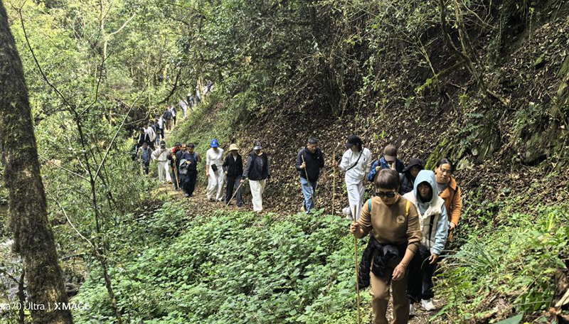 在向导带领下,大家穿行于原始森林,沿途春景如画,草木萌发、杜鹃繁花缀径,清风裹挟草木清香,驱散了工作的疲惫。大家结伴而行、欢声笑语,有的畅谈工作生活,有的驻足赏花,有的相互鼓励、彼此照应,全程无一人掉队,生动彰显了团队团结协作的良好作风。每到一处,向导现场讲解高山湿地水源地分类、水源保护常识、植物分类等知识,结合公司“人防+物防+技防”的水源保护体系,介绍日常水源巡查、水质监测等工作的重要性,让员工在徒步赏春的同时沉浸式学习水源地科普知识,深刻感悟每一滴水从源头到千家万户的来之不易。
